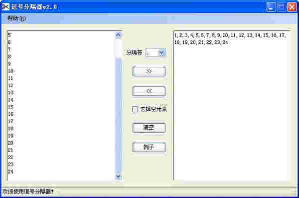 点击“》”按钮即可在软件右侧得到去除分隔符的内容