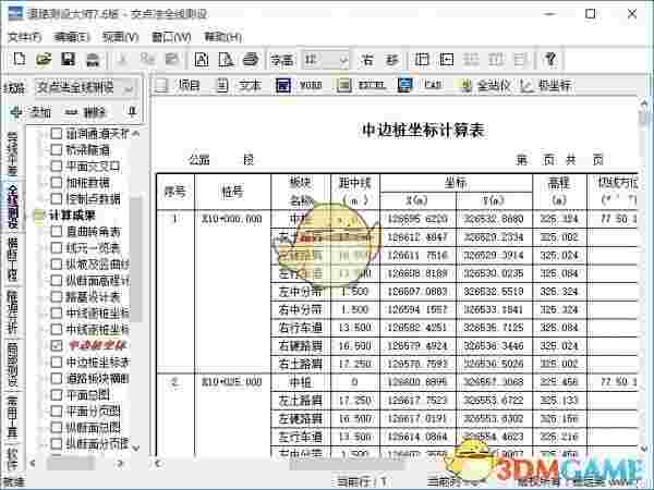 (二)、道路全线测设系统: 将道路全线或一个标段数据一次性输入,统一计算中边桩平面坐标及高程,进行统一的查询、放样等计算。适用于各等级道路主线、立交匝道进行勘测设计与施工放样工作。 计算的坐标、高程成果可以直接传输到全站仪用于放样。