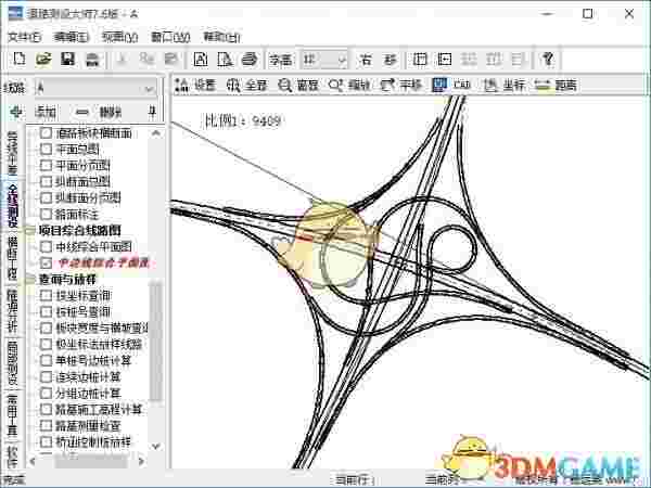 2、平面 。可以选用交点法或积木法,都可适用于对称或不对称基本形、S或C形、拱(凸)形、复曲线、卵形线、回头曲线等各种线形,交点法中还具有方便易用的根据切线长反算半径、构成切基线、配S或C及复曲线、卵形线等功能 。提供的成果主要有:直线曲线转角表、线元一览表、逐桩坐标计算表、生成平面总图及按任意纸张分页的平面图。