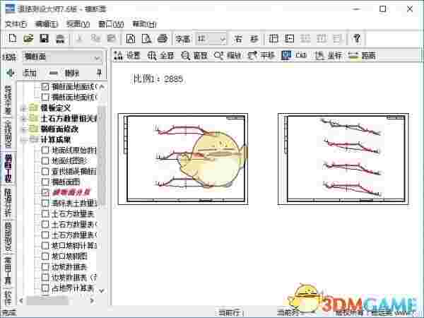 1、横断面:自动进行横断面设计戴帽,支持从数字地形提取横断面。 提供的成果:横断面图、清除表土数量表、土石方数量计算表、坡口坡脚计算表及图形、占地界坐标计算、道路用地计算及图形。其中坡口坡脚计算的坐标、高程可以直接传输到全站仪用于放样。 具有边坡超欠挖控制功能。