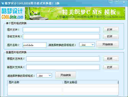 酷梦图片格式转换器是一款专业的图片格式转换的工具软件,支持jpg、gif、png、bmp、tiff等不同图片文件格式之间的转换。十分方便快捷,界面简约,布局直观清晰,极易上手,是一款不可多得的利器。