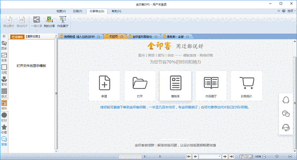 金印客DPS印刷排版软件是一款专业的印刷排版的工具软件。使用者可以通过软件制作对需要打印的报纸、杂志、书本、海报等等文件,并且对其进行排版,软件还内置了大量的素材图片供使用者下载使用,支持多种印刷的工艺与品种。