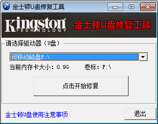 金士顿格式化修复工具是一款专业的金士顿U盘修复的工具软件,软件可以帮助用户检测金士顿U盘出现的不同问题包括u盘连接异常、无法打开u盘等,并针对不同的问题进行对应的修复方法,软件使用起来也很方便快捷,只需选择好需要修复的u盘驱动器点击开始修复即可,对该软件此版本有兴趣的用户快来下载吧!