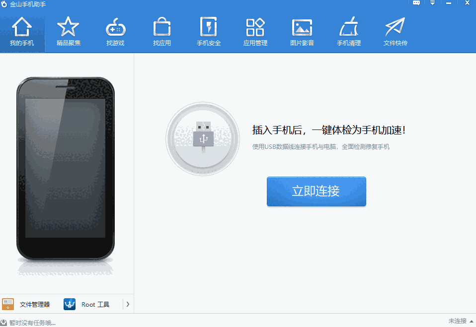 金山手机助手是安在电脑上的手机软件商店和手机软件管理平台为使用者提供游戏、软件、音乐、小说等等内容。软件布局直观清晰、操作简单,想下哪个应用就点一下就可以了,界面设计美观大方。