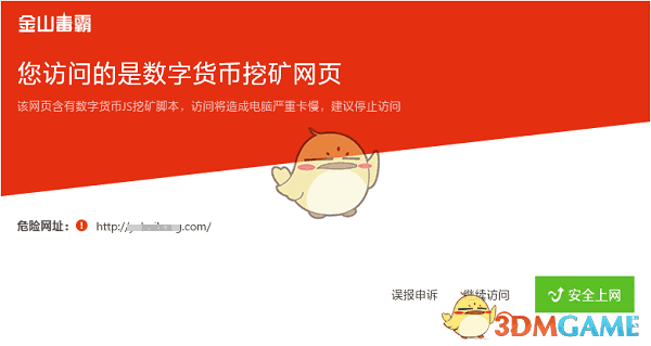 1. 挖矿拦截:2017年以比特币为首的加密币吸引大量炒家,黑色产业链对加密币更加为之疯狂。感染电脑、手机等终端设备、入侵网站植入挖矿病毒均成为黑色产业牟利的手段。鉴于挖矿病毒对系统资源的消耗十分严重,金山毒霸已升级相应的防护功能。当用户访问到含挖矿病毒的页面,金山毒霸会加以拦截,以阻止挖矿病毒运行。