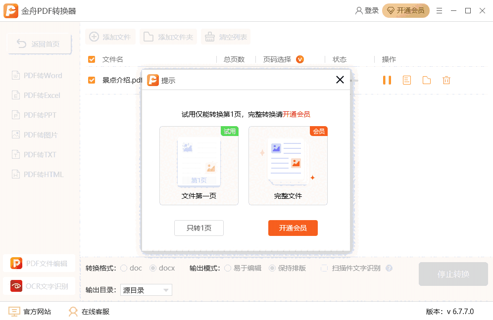 运行软件,打开金舟PDF转换器,点击进入软件,选择您需要使用的模式,如果需要将PDF文件转化为ppt文件,点击左侧的“文件转ppt”模式。