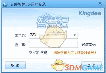 1.打开金蝶智慧记进销存软件,点击“登录”按纽,首次使用需要更改密码。如果非首次登录即可进行智慧记主界面。