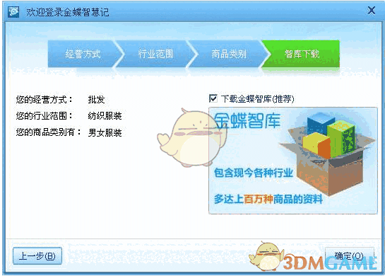 5.可以选择“下载金蝶智库”,也可以不选择下载,金蝶智库助您更快速建立货品资料,也为您提供网络参考价,选择下载,下载完成后立即进入金蝶智慧记主界面。