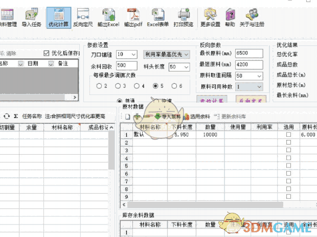 3、可以编辑原材料的长度,从材料库上传各种数据,方便您比对最后的优化率
