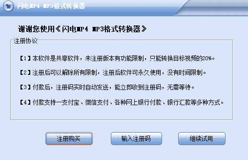 闪电MP4 MP3格式转换器未注册版为免费软件,无捆绑软件。