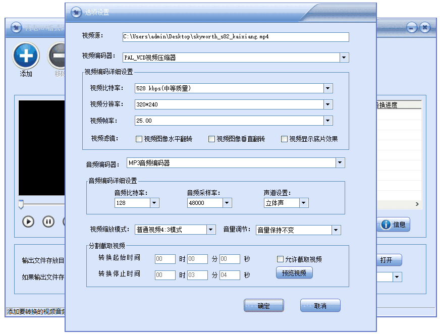支持转换前对视频文件多种参数进行设置,包括分辨率,视频码率,音频码率,声道,采样率等。
