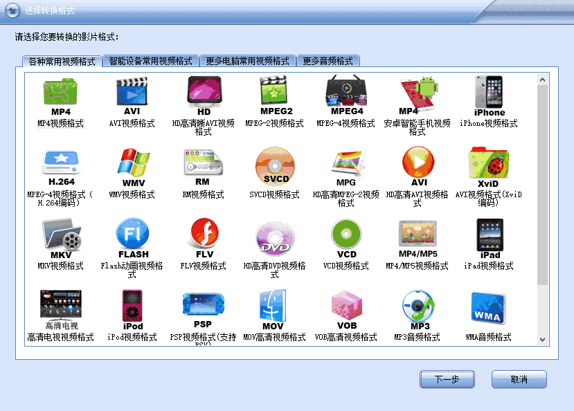 支持RM、RMVB格式转换为AVI、MP4、MKV等视频格式,方便在智能手机上播放各种所需要的视频。
