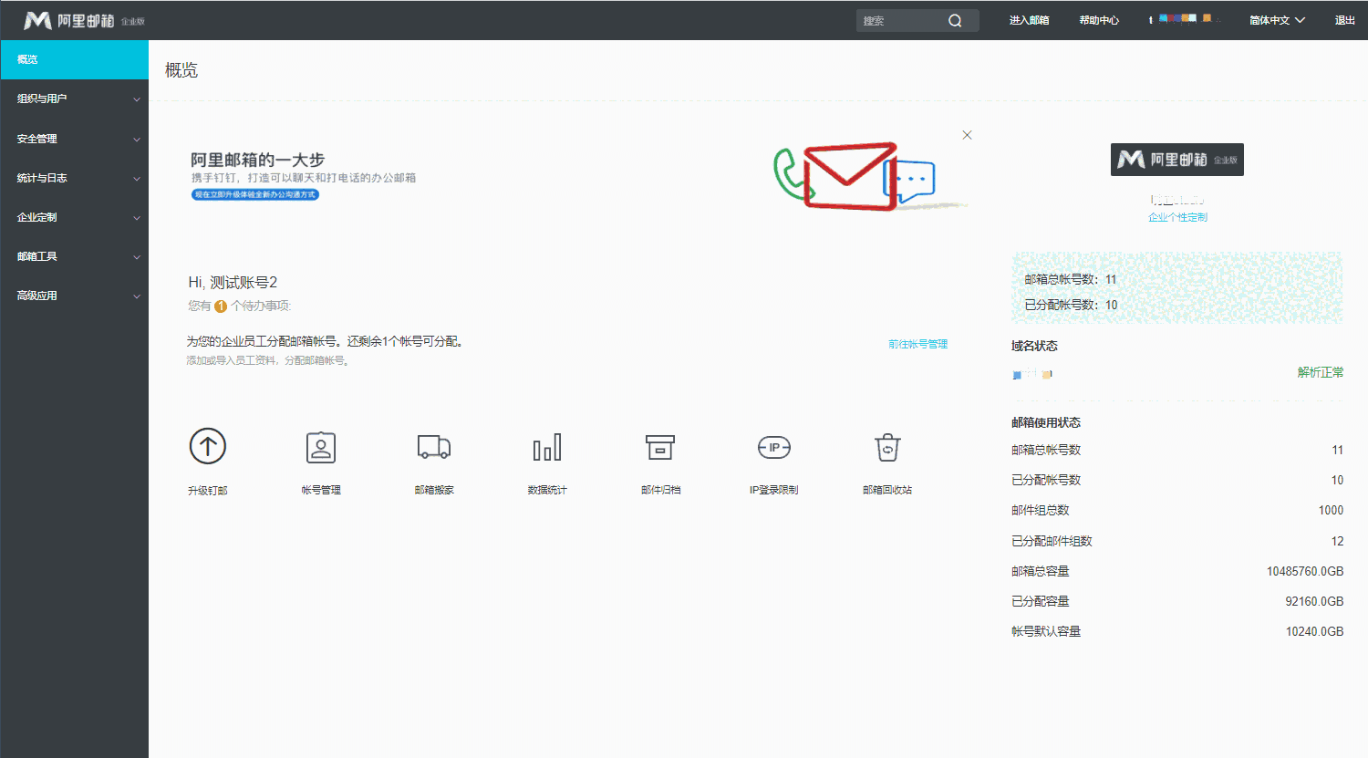 单组织支持绑定多个域名,根据组织管理需求,可实现不同域名创建帐号或统一设定域别名