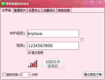 青青草原WiFi热点是一款专业的WiFi热点创建的软件工具,软件可以通过电脑的无线网卡新建一个WiFi热点供其它设备连接上网。非常方便快捷,软件界面简约,布局直观清晰。操作简单,容易上手,是一款十分实用的工具。
