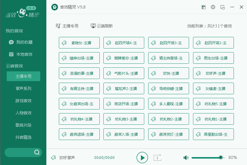 音效精灵官方版是一款非常实用的辅助音效软件,软件功能强大,操作简单易用,内置有主播专用,游戏音效,乐器音效,拟物音效,歌曲片段,人物音效,DJ音效,自然环境,铃声音效等50个音效分类专辑,适用于网络主播、MJ配音、电台,满足用户的各种使用需求,有需要的小伙伴快来下载体验一下吧!