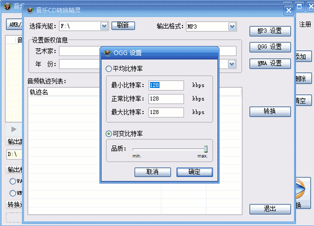 音频转换精灵支持CD抓轨功能,能将CD光盘上的音乐转换为MP3、OGG、WAV、WMA。