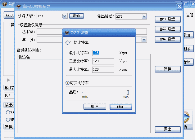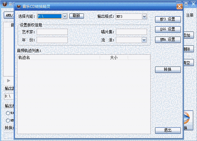 音频转换精灵支持CD抓轨功能,能将CD光盘上的音乐转换为MP3、OGG、WAV、WMA;