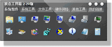 顶点工具箱是一款专业的软件集合的工具箱。软件内置了系统工具、文件处理工具、网络工具、硬件工具和其它工具五大类。可以帮助使用者处理综合性的问题如清理系统垃圾、文件反删除、ip地址修改、cpu信息查看、颜色拾取等等功能。