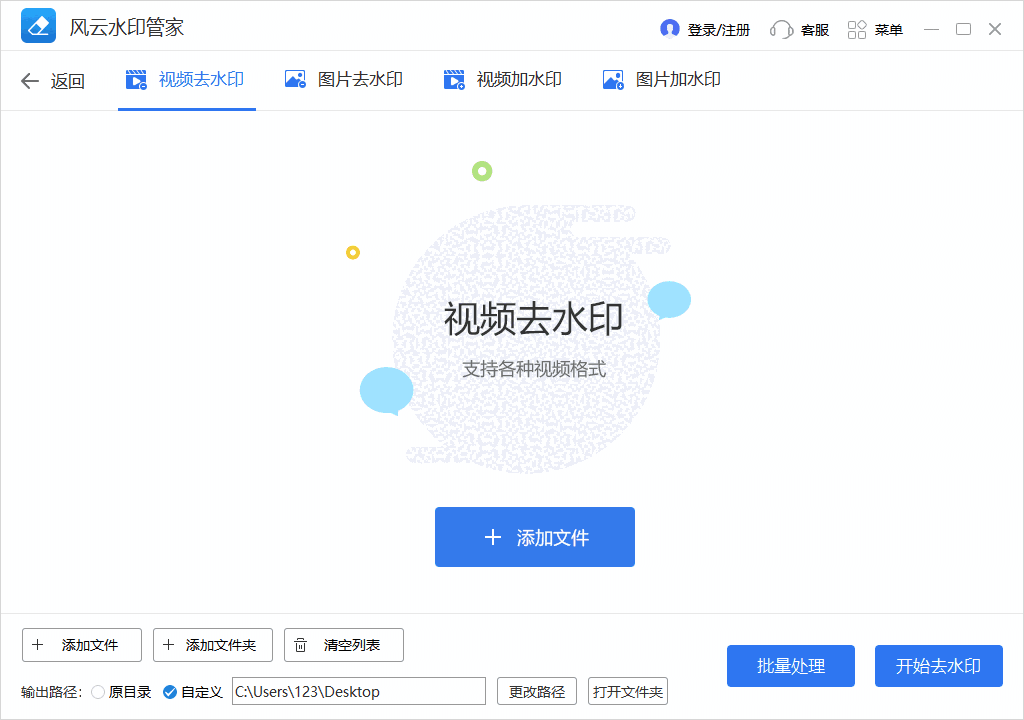 风云水印管家支持一键清除视频图片水印,完美去除各种水印瑕疵,自由选择需要清除范围,支持批量去除水印,具有专业技术,简单易用。