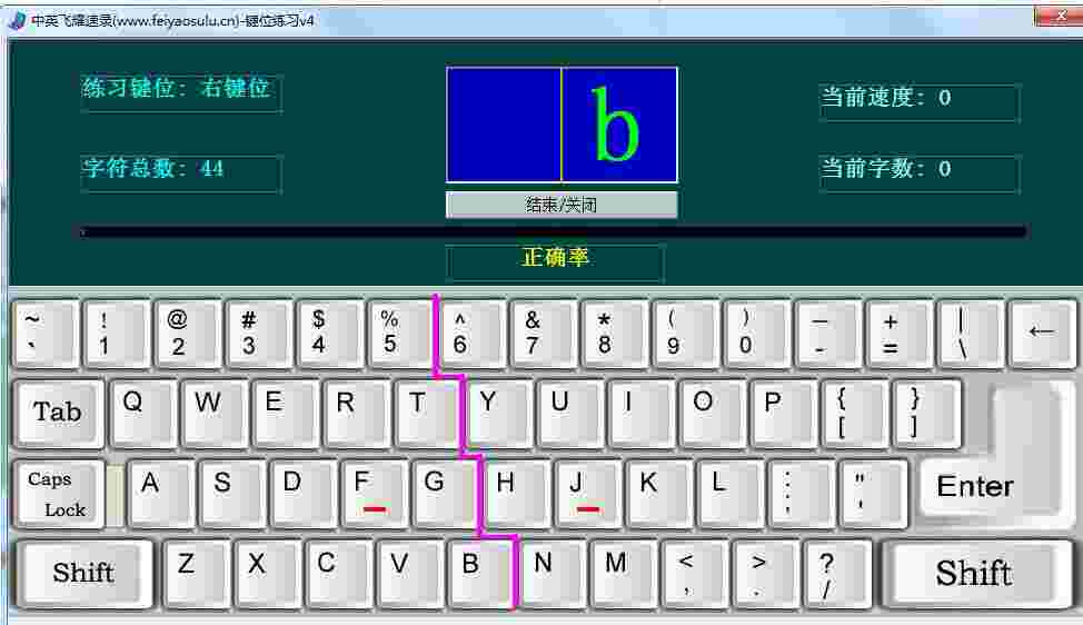 显示键位:对要打的字符预先给出键位位置提示。练习熟了后就不要选择提示了。