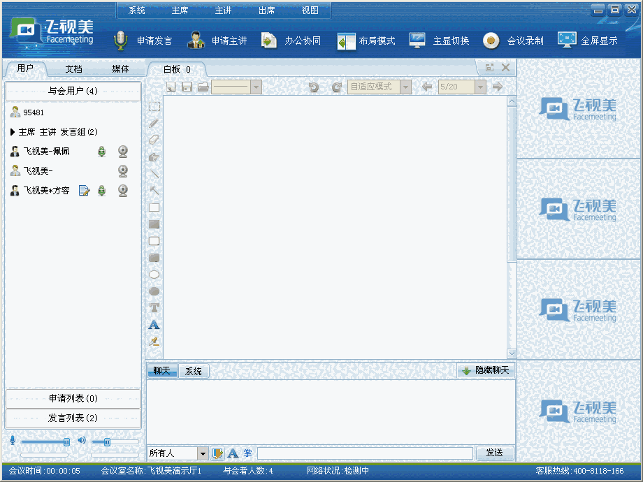 飞视美视频会议系统是一款专业的视频会议的软件工具,软件提供全高清画质、高保真音质的视频会议,加密保护传输、转发、云端等数据的安全。非常方便快捷,软件界面简约,布局直观清晰。操作简单,容易上手,是一款十分实用的工具。