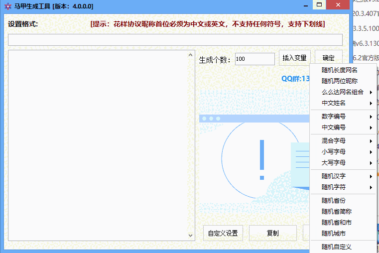 3、一键批量生成大量相同格式的马甲,可自定义格式。