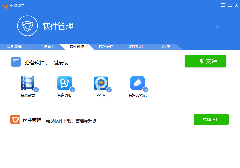 系统刚装好,需要各种软件驱动精灵软件宝库帮你实现快速装机一条龙,要什么软件直接挑选,快速又安全。