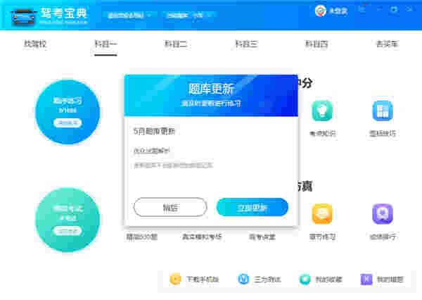 驾考宝典是一款非常实用的交通规则学习软件,软件功能非常强大,支持科目一、二、三、四,一整套的驾考流程服务,提供了丰富的题库内容,包括道路交通规则、安全行车、机动车驾驶等方面的考试题目,使得用户能够随时阅读交规做练习,轻松考取驾照,有需要的小伙伴赶快下载体验吧!