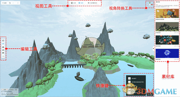 支持上下左右任意角度观看整个3D场景与元素,全方位把控3D场景的布局和外观。