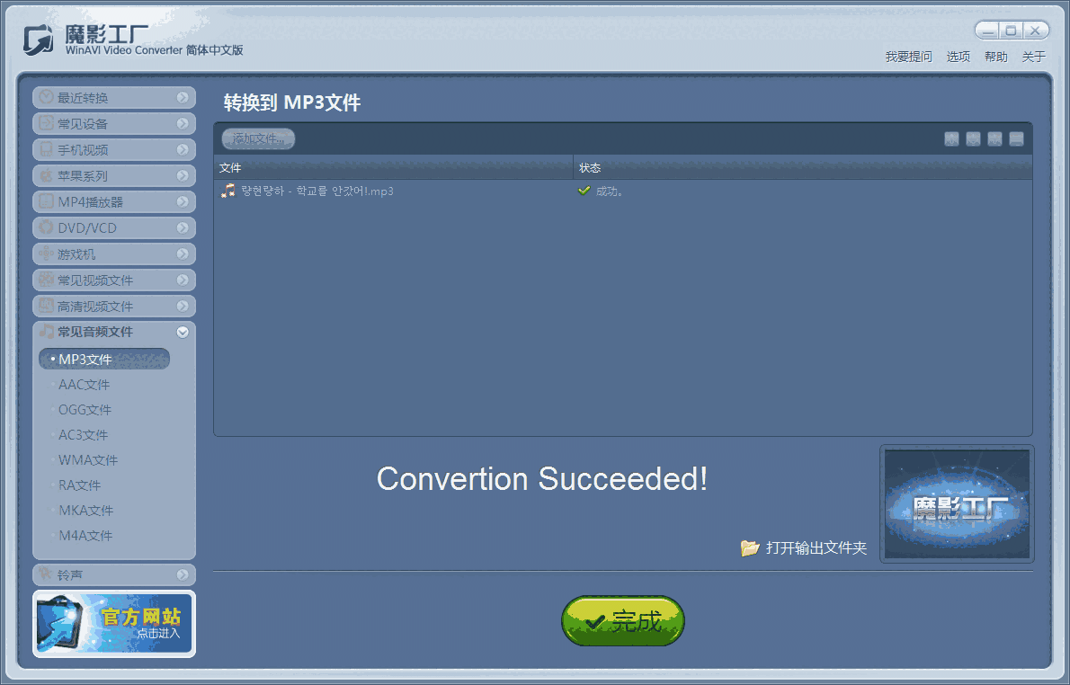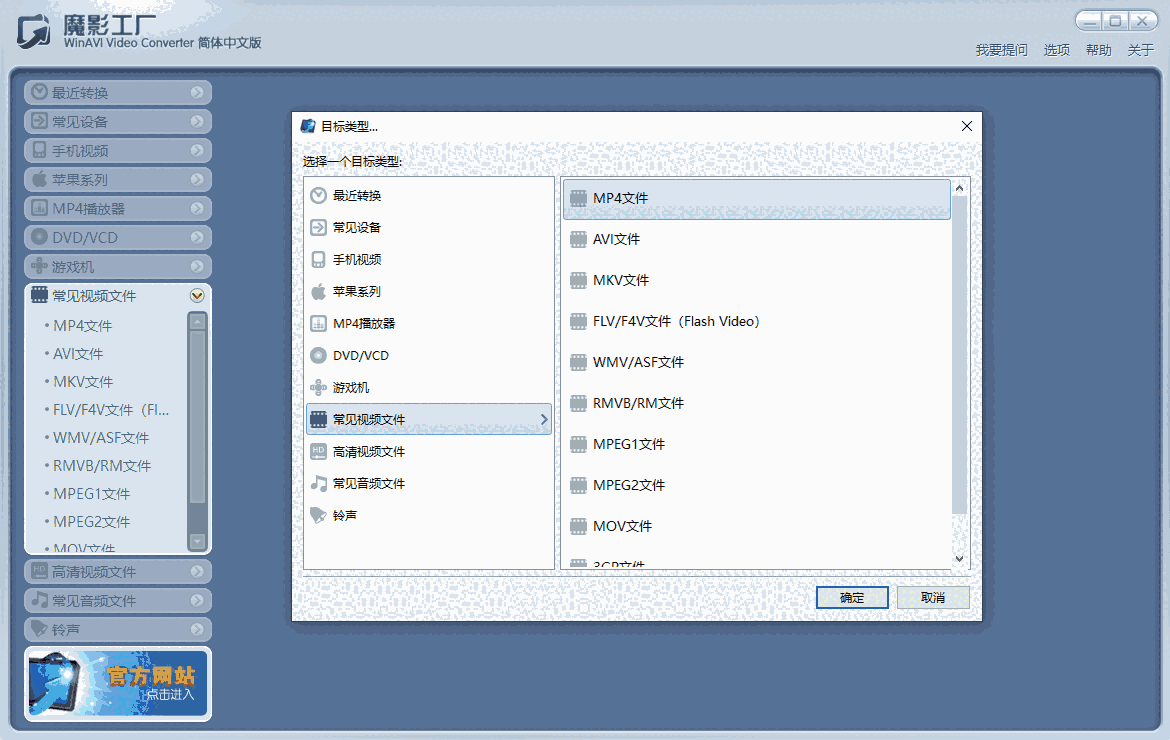 魔影工厂是一款专业的音视频格式转换的工具软件,支持avi、mp3、vcd、aac、mp4、wav等音视频文件格式之间的互相转换。十分方便快捷,界面简约,极易上手,是一款不可多得的利器。