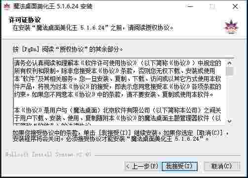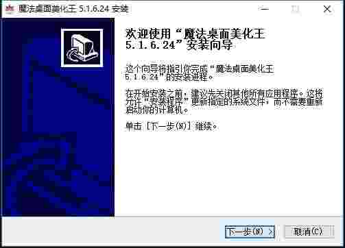 下载魔法桌面美化王软件包,解压缩后,双击打开安装程序,点击下一步。