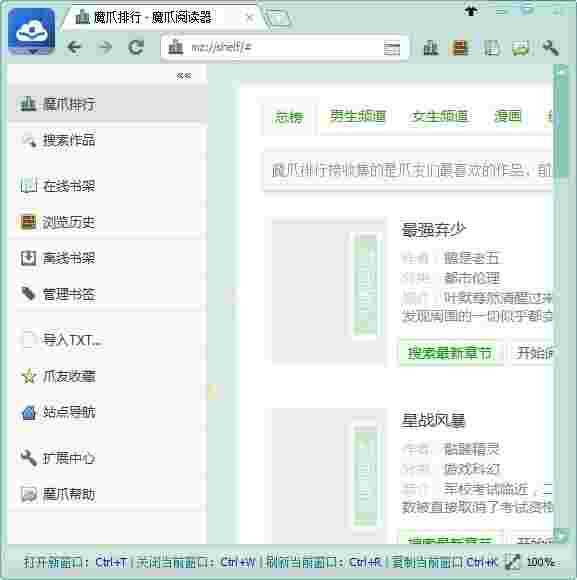 魔爪是一款网络流行的免费小说软件,软件支持近百个小说/漫画网站过滤广告、弹窗下载纯净的内容,具有在线过滤阅读系统、小说搜索引擎,支持TXT转换,TXT合并等,它可以让你更好的看小说,同时阅读器中包含了大量的小说资源,也支持近百个小说网站的小说下载,有需要的就来下载吧!