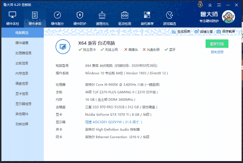 全面检测电脑硬件信息,做出最专业的判断,在买机子的时候很有价值哦。