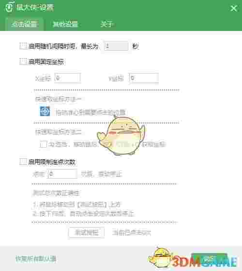 2.鼠大侠鼠标连点器是一款支持左右键点击的迷你鼠标软件,只需要设置鼠标的点击类型、设定点击时间间隔和功能热键,移动鼠标至需要点击的地方,开启热键程序即可实现鼠标自动进行点击,再也不需要手动繁琐的进行点击了。
