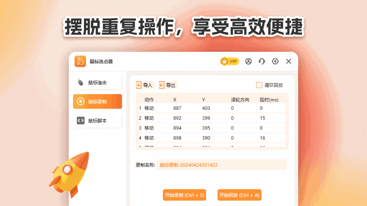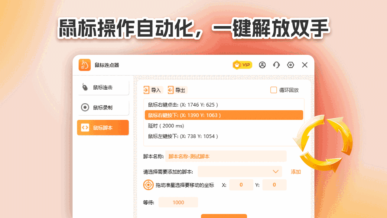 鼠标连点器是一款可以连点鼠标的鼠标连点器软件,软件功能更丰富、操作更便捷,支持鼠标连点,鼠标脚本录制回放,鼠标自定义脚本,脚本播放等功能,帮助您实现办公自动化,让您在玩游戏、网购抢购的时候全自动点击鼠标,提高点击效率,减少体力消耗,有需求的小伙伴快来下载使用吧!