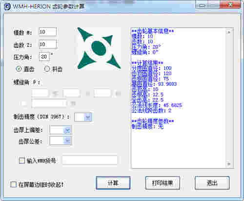 齿轮参数计算器是一款专业的齿轮的计算工具软件。使用者可以通过软件根据已知的数据条件包括模数、齿数、压力角、螺旋角等计算齿轮的分度圆、齿顶圆、基圆的直径和高以及公法线长度、跨齿数等等。软件体积小巧,使用方法也很简单,是一款很实用的工具。