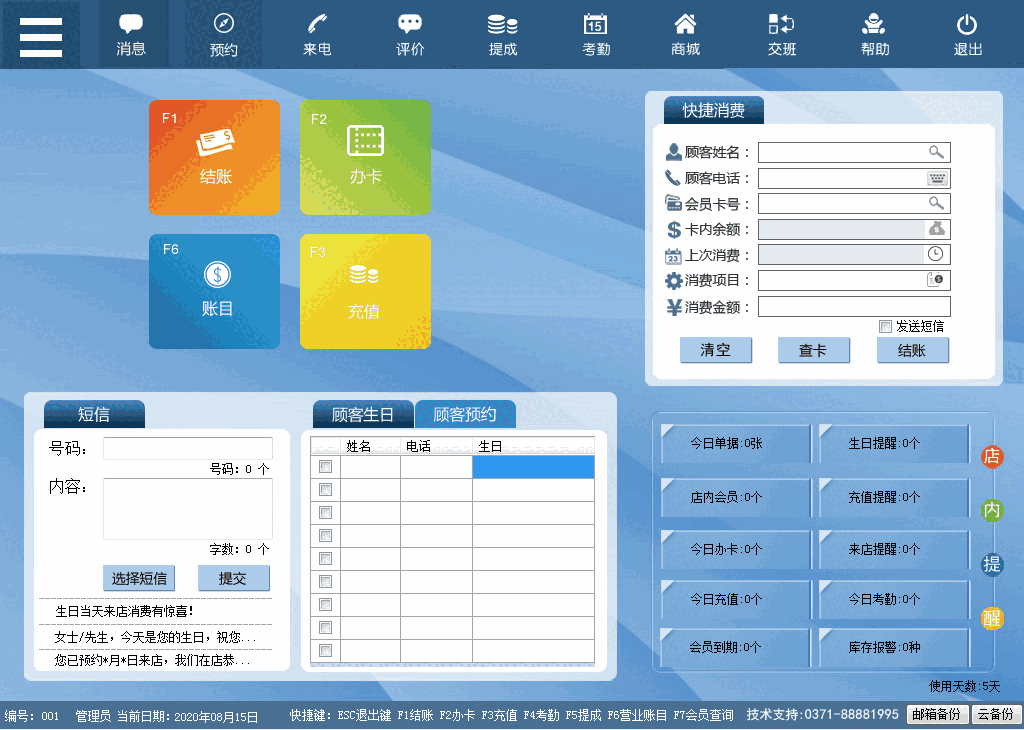更方便快捷的向会员,散客传达一些重要信息,生日祝福,消费提醒、充值提醒,活动说明等;