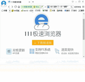 111极速浏览器供使用计算机访问网页的基本功能,包含地址栏、搜索栏、多标签、收藏夹、历史记录、下载管理、安全功能、无缝双核等功能,欢迎使用!