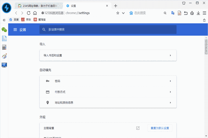 123加速浏览器是一款专业的安全浏览器,软件界面清晰、简洁、使用方便,具有安全、网页浏览更稳定、网页速度流畅、启动速度快等特点,拥有的隐私模式将保密用户的隐私,多种功能的自定义选择能为您提供更个性化的浏览体验,123加速浏览器上网加速5倍,让您畅享极速上网体验,感兴趣的赶快下载吧!