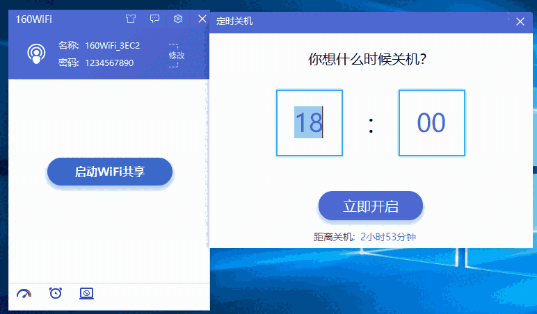 160WiFi电脑版是一款专业的wifi管理的软件工具,软件适合自带无线网卡的电脑使用,你可以在软件上开启热点wifi,让你的其它移动设备连接上网。非常方便快捷,软件界面简约,布局直观清晰。操作简单,容易上手,是一款十分实用的工具。