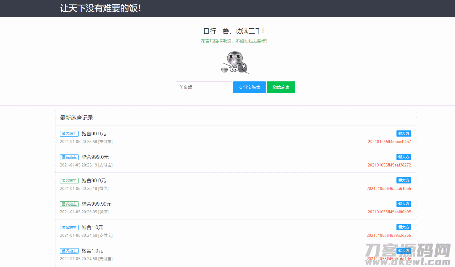2021个人在线要饭网站源码