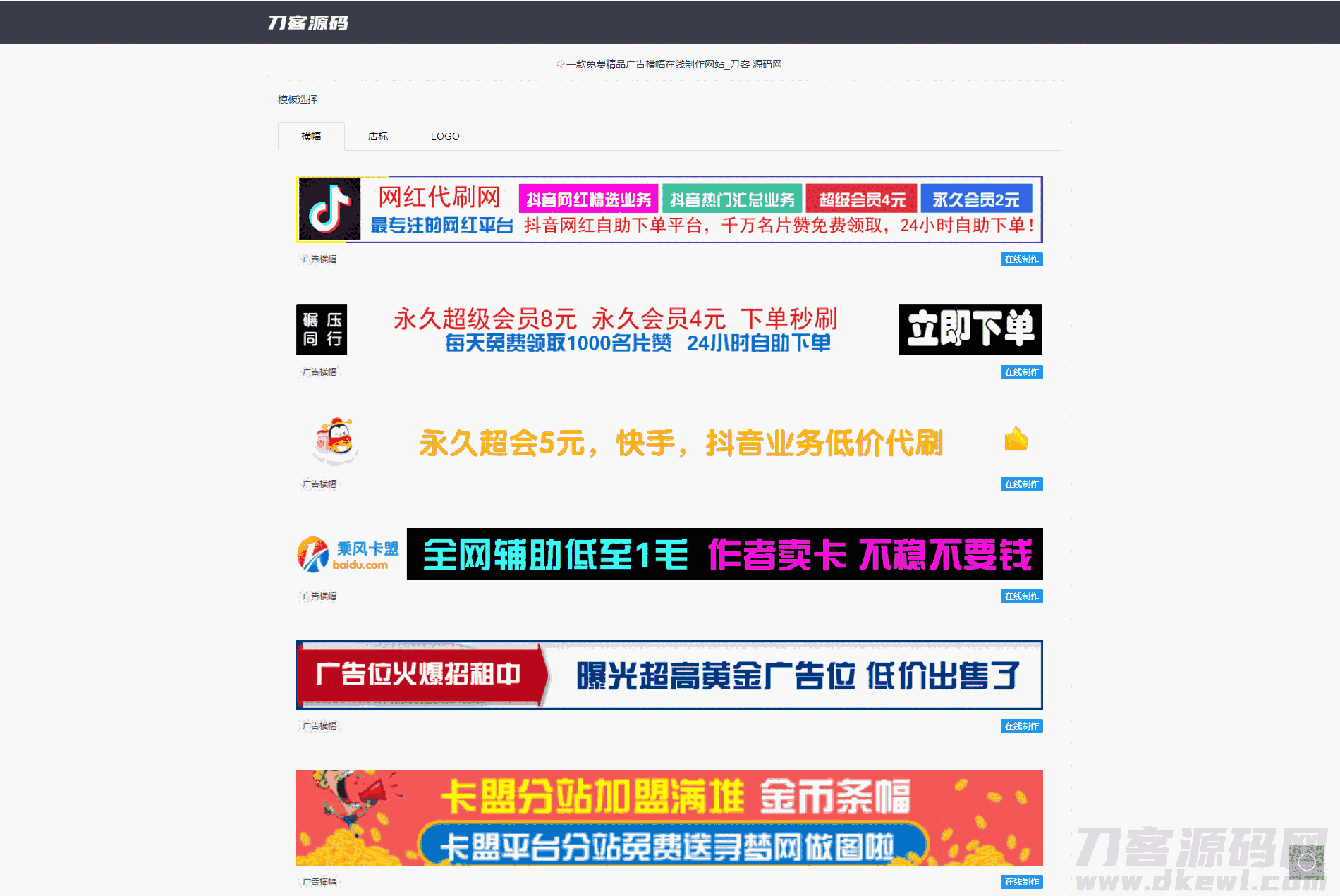 9080免费资源分享,PHP源码、网站源码、游戏源码、模板插件、软件工具、网络教程、为中国站长提供一站式源码下载 » 2022在线横幅广告_店标_LOGO制作系统最新源码