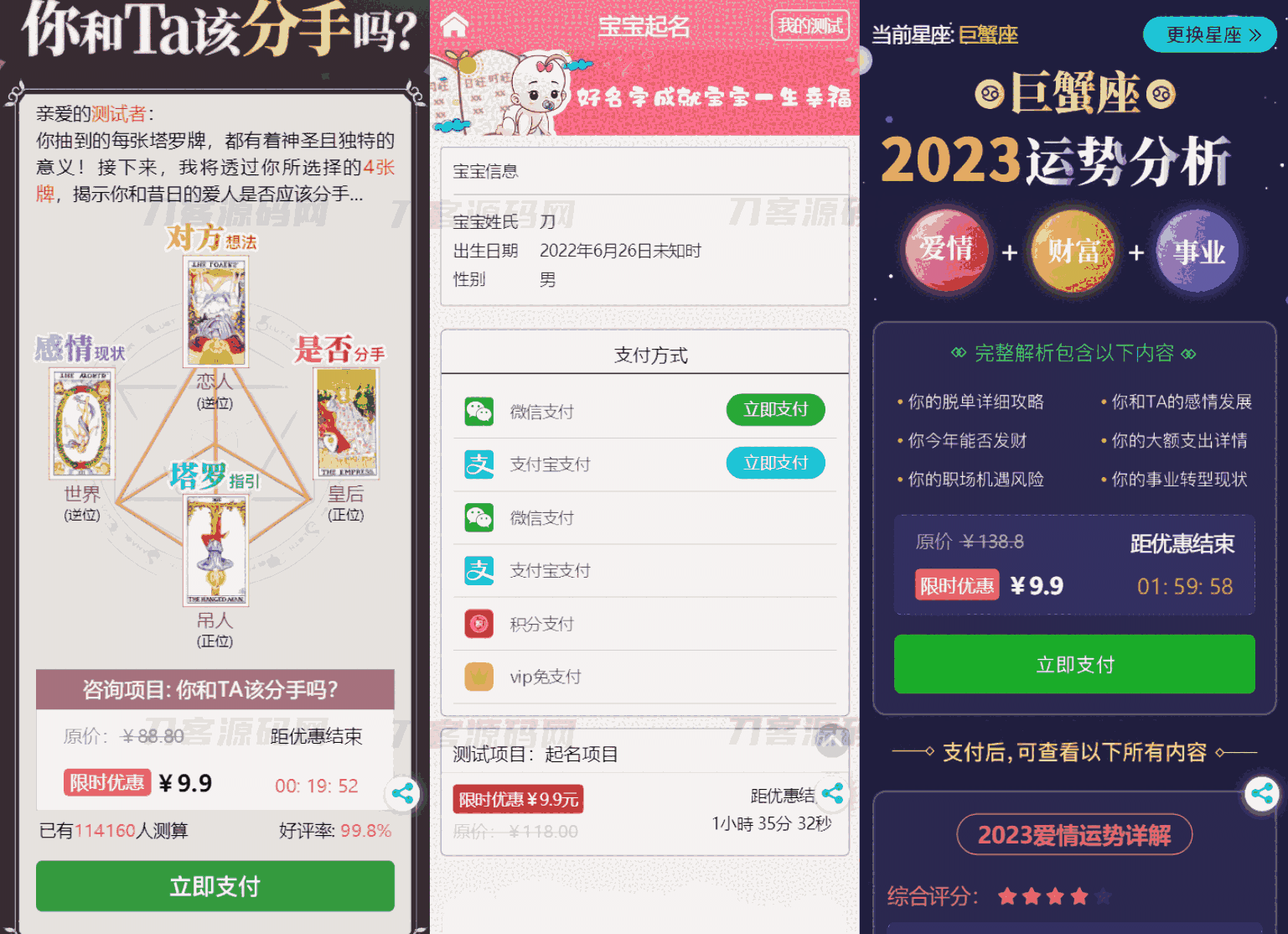 9080免费资源分享,PHP源码、网站源码、游戏源码、模板插件、软件工具、网络教程、为中国站长提供一站式源码下载 » 2023全新UI风水起名塔罗占卜星座运势测算网站源码 附搭建教程