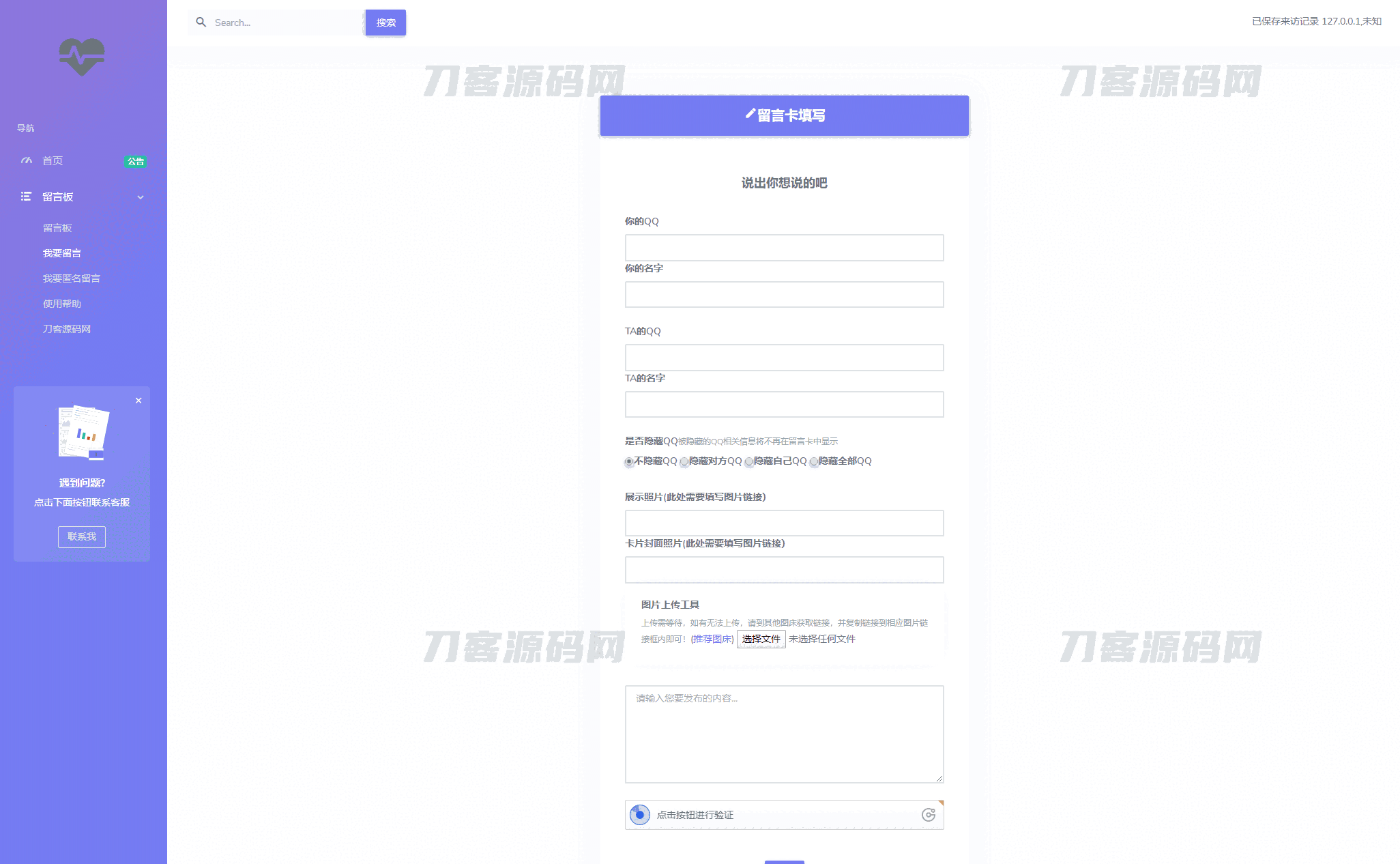 9080免费资源分享,PHP源码、网站源码、游戏源码、模板插件、软件工具、网络教程、为中国站长提供一站式源码下载 » 2023最新全开源在线留言系统源码 匿名留言网站系统源码下载