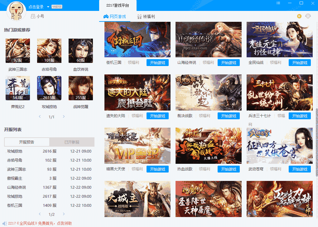 汇集了2217游戏平台所有的网页游戏,无需网页浏览器,点击即可进入游戏
