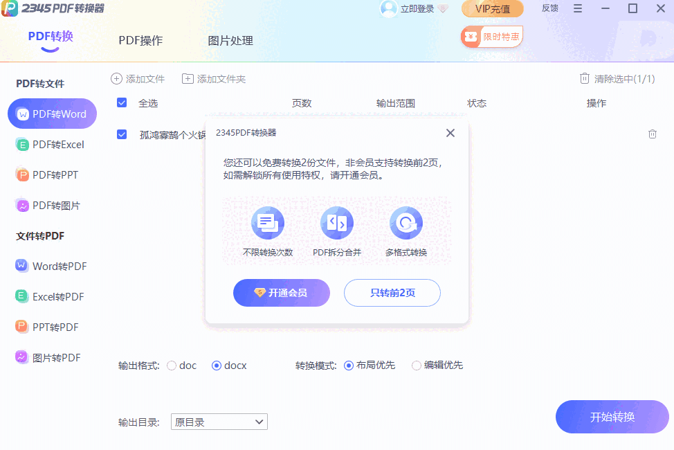 2345PDF转换器最新版支持PDF转Word、PPT、Excel、图片等格式