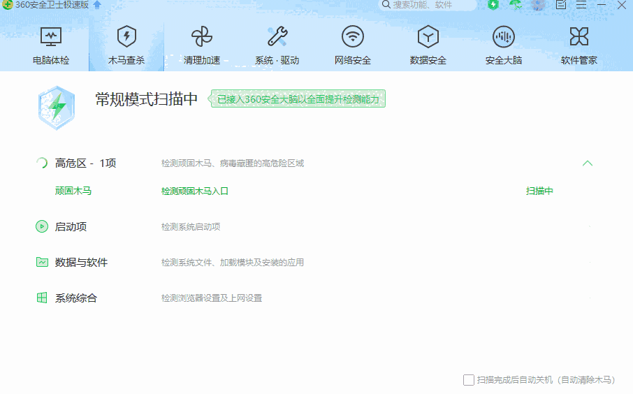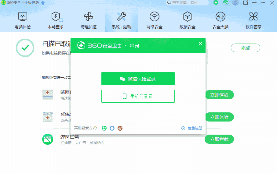 360安全卫士极速版是一款电脑防护杀毒软件,界面简洁直观,操作非常简单。支持一键查杀、一键体检、一键清理等多个防护杀毒相关功能,拥有庞大强力的防火墙和杀毒技术时刻保护你的电脑安全。