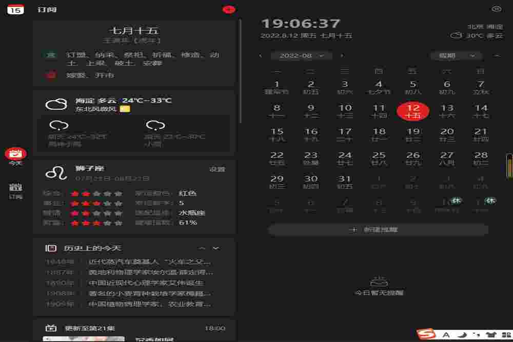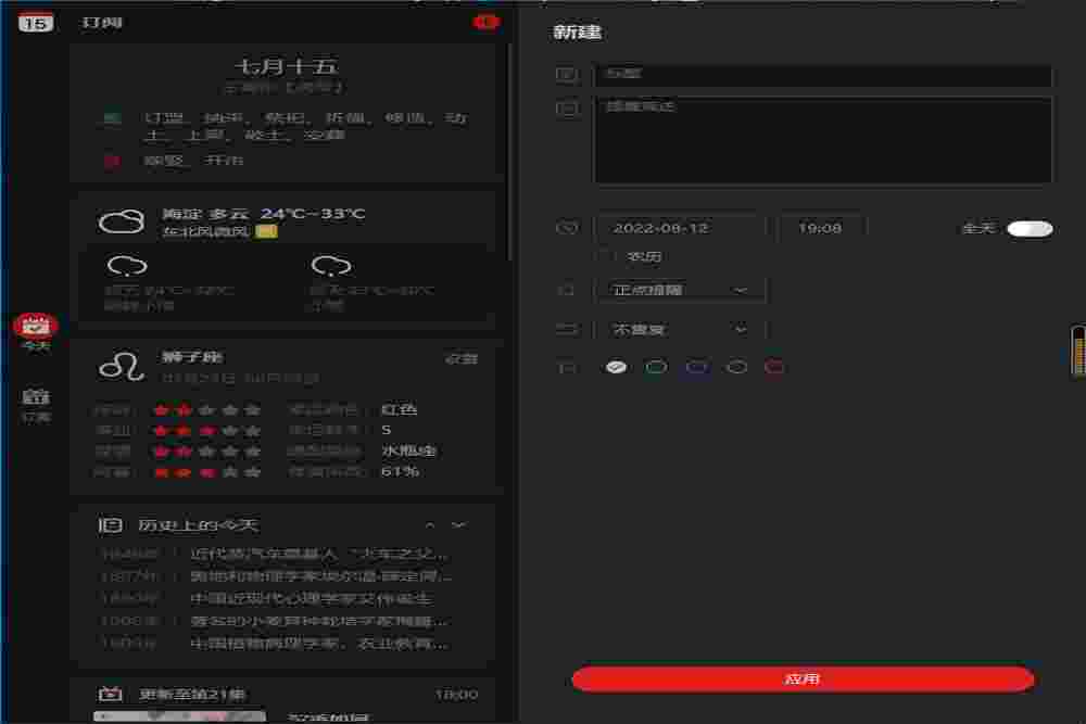 360日历是一款专业的桌面日历的工具软件,360日历支持显示公历、农历、时间、法定节假日、24节气、以及本地天气预报,并且会推送每日十分方便快捷,界面简约,布局直观清晰,操作简单,极易上手,是一款不可多得的利器。