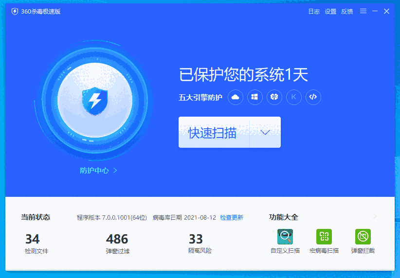360杀毒是一款电脑防护杀毒软件,界面简洁直观,操作非常简单。支持一键查杀、一键体检、一键清理等多个防护杀毒相关功能,拥有庞大强力的防火墙和杀毒技术时刻保护你的电脑安全。