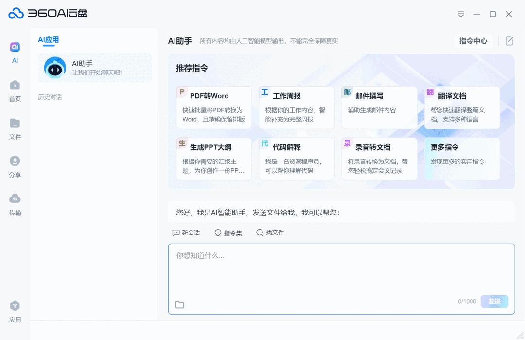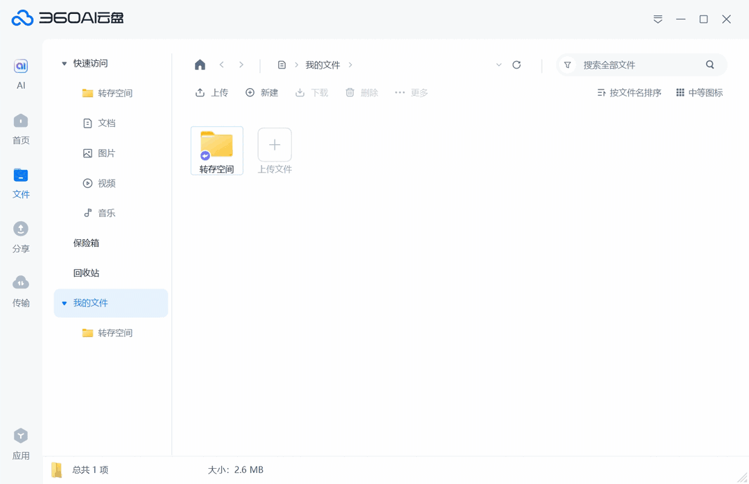 360AI云盘是一款非常实用的分享式网络硬盘软件,软件支持PC、Android手机、iPhone手机数据备份同步,拥有文件安全存储、自动备份、多端同步、文件权限管理、搜索和清理重复文件等功能,轻松的和他人共享照片、视频和资料,也能够与同事共享工作文档,方便办公,轻松满足用户存储需求,有需要的小伙伴赶快下载使用吧!